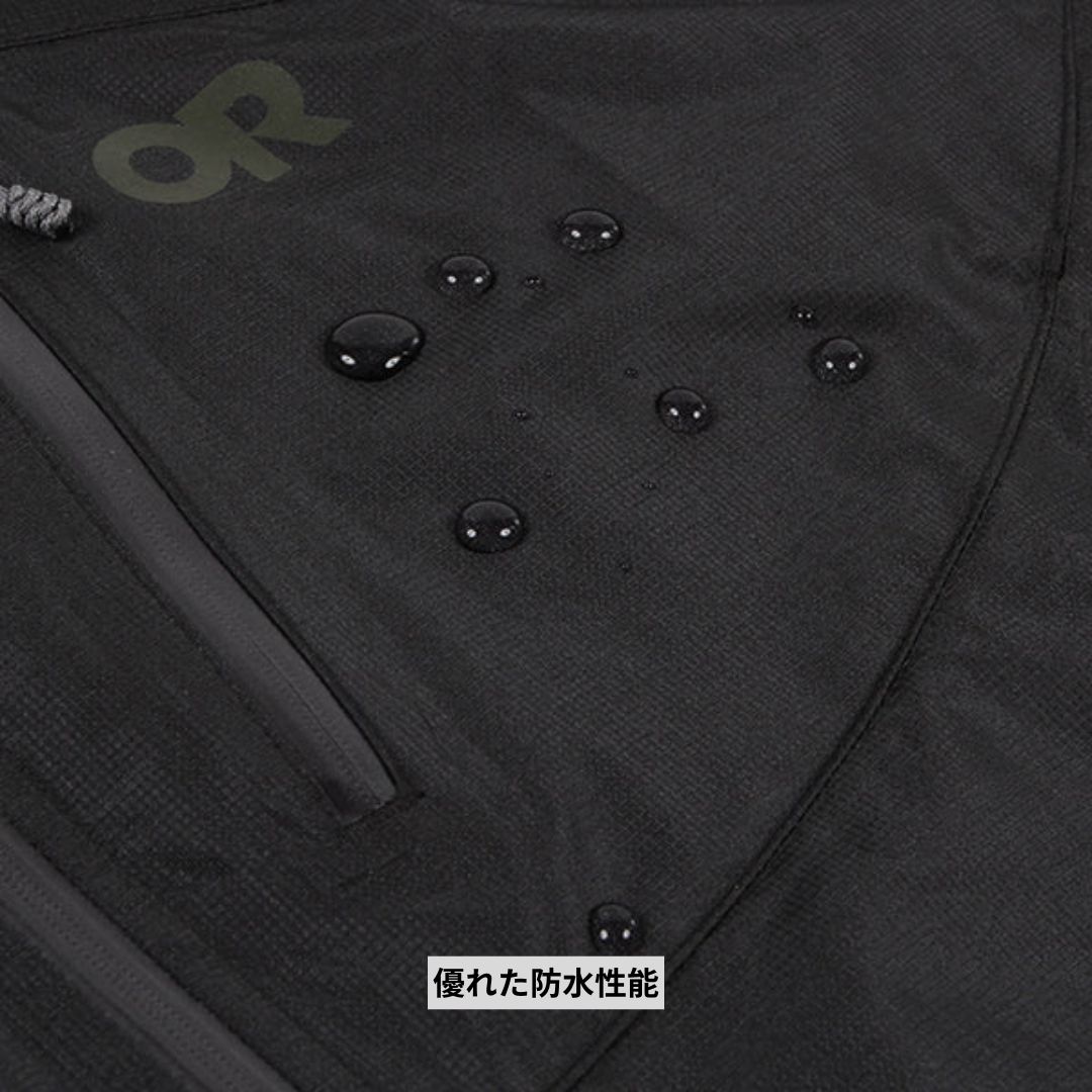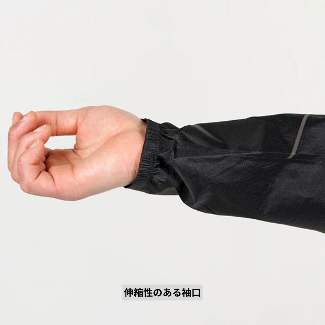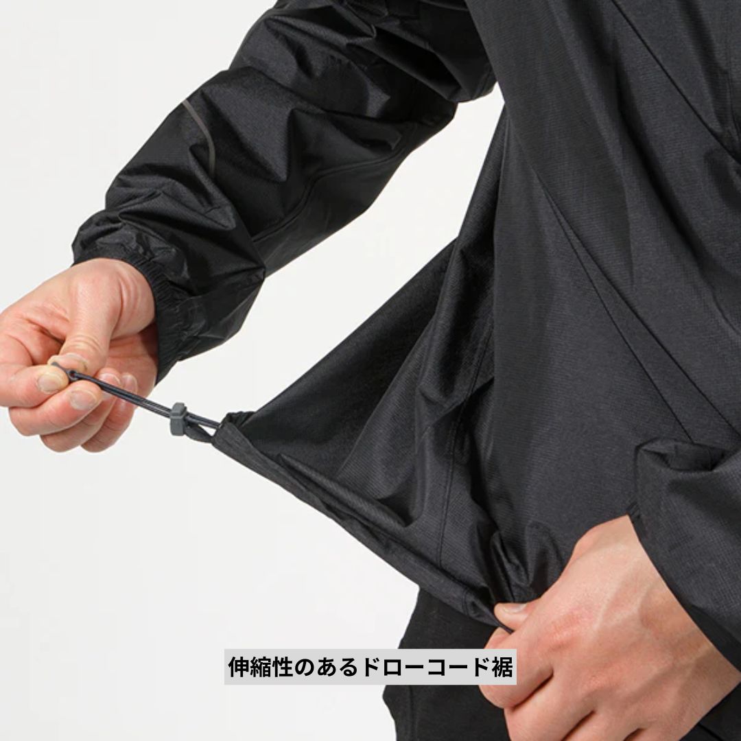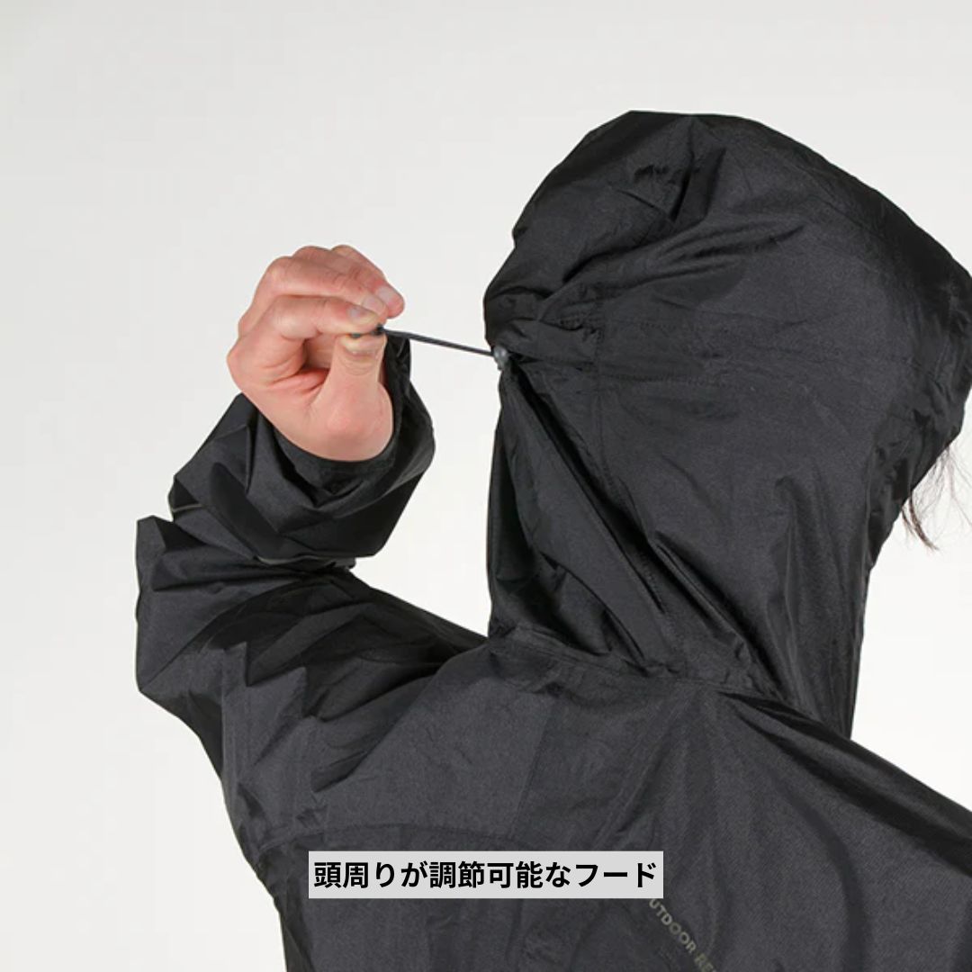・頭周りの調節が可能なフードと伸縮性のある袖口が雨の侵入を抑制