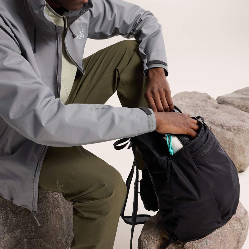 メインコンパートメント内には、10インチまでのタブレットやハイドレーションを収納できるスタッシュポケット、大切な小物を守るセキュリティポケットを装備。外側のジッパーポケットはアクセスしやすく、キーフックも付いているため財布やスマートフォンの収納に最適です。さらに、外ポケットを裏返してパック全体を収納すれば、スタッフサックとしてコンパクトに持ち運ぶことが可能です。