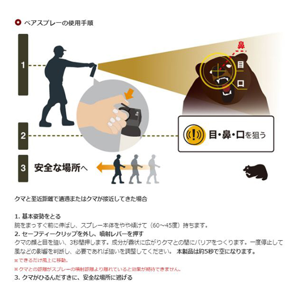 登山やキャンプ、釣り、狩猟など熊が出没する地域にお出かけの際に、リスクを軽減することができます。