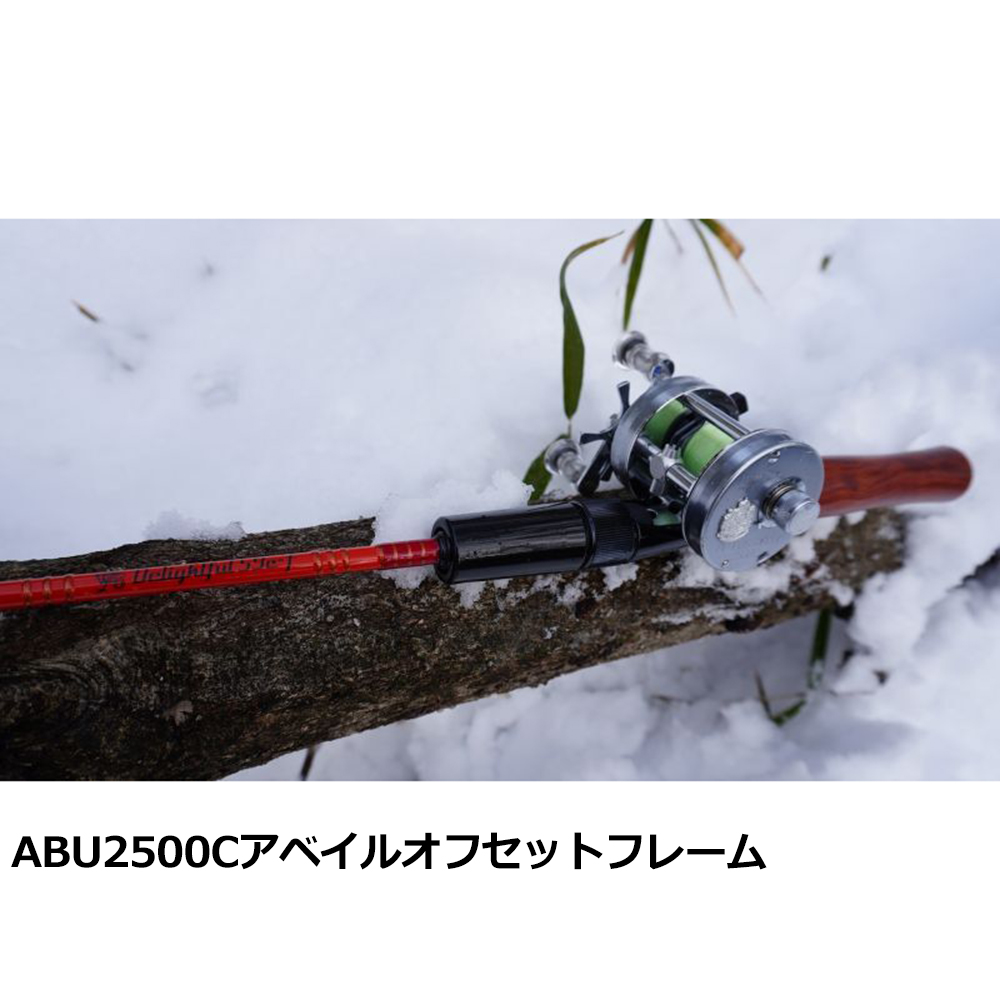 また、アベイルオフセットフレームのABU2500C用は取り付け可能ですが、1500C用のオフセットフレームはフレーム幅が狭いためレジオンのリールシートに干渉して取り付けることが出来ませんのでご注意ください。