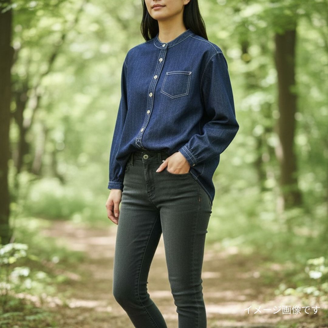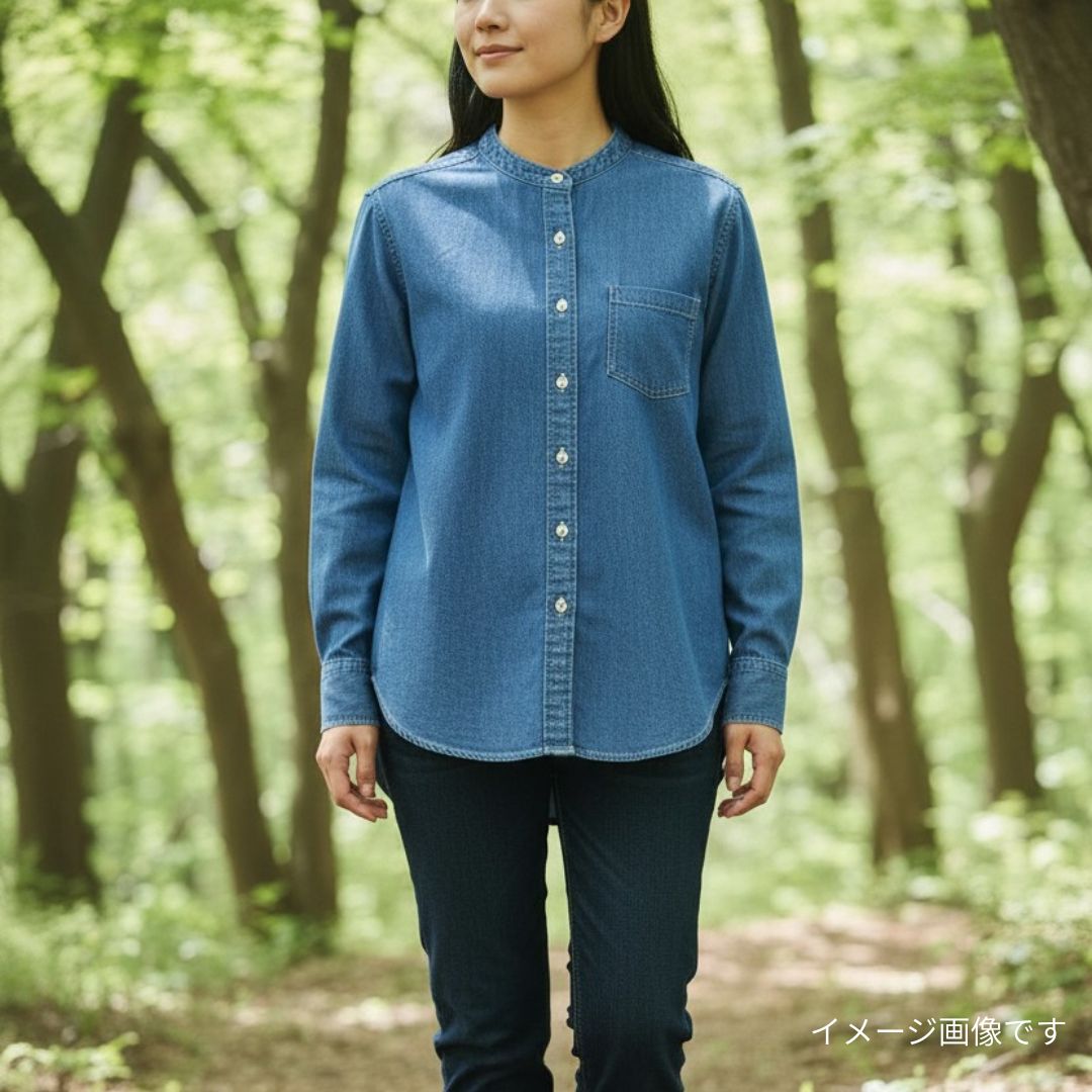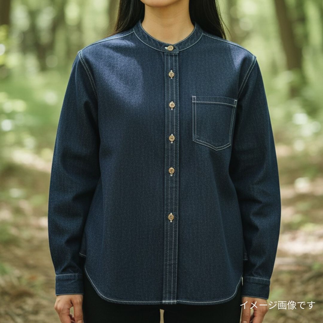 【WILD BASE×Little Market】のコラボレーションによるスタンドカラーのデニムシャツです。