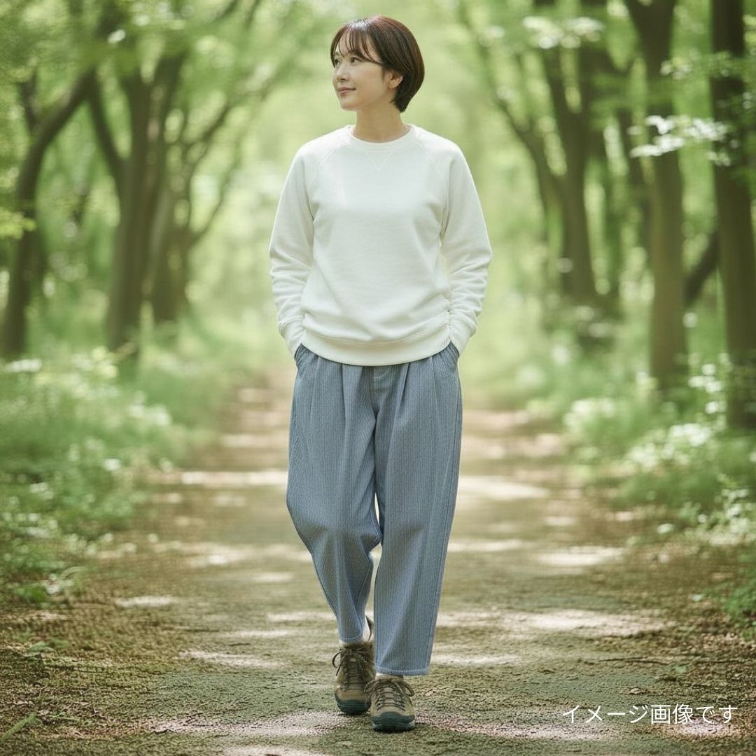 ワイドなシルエットで、カジュアルながらも上品な着こなしを楽しめます。
