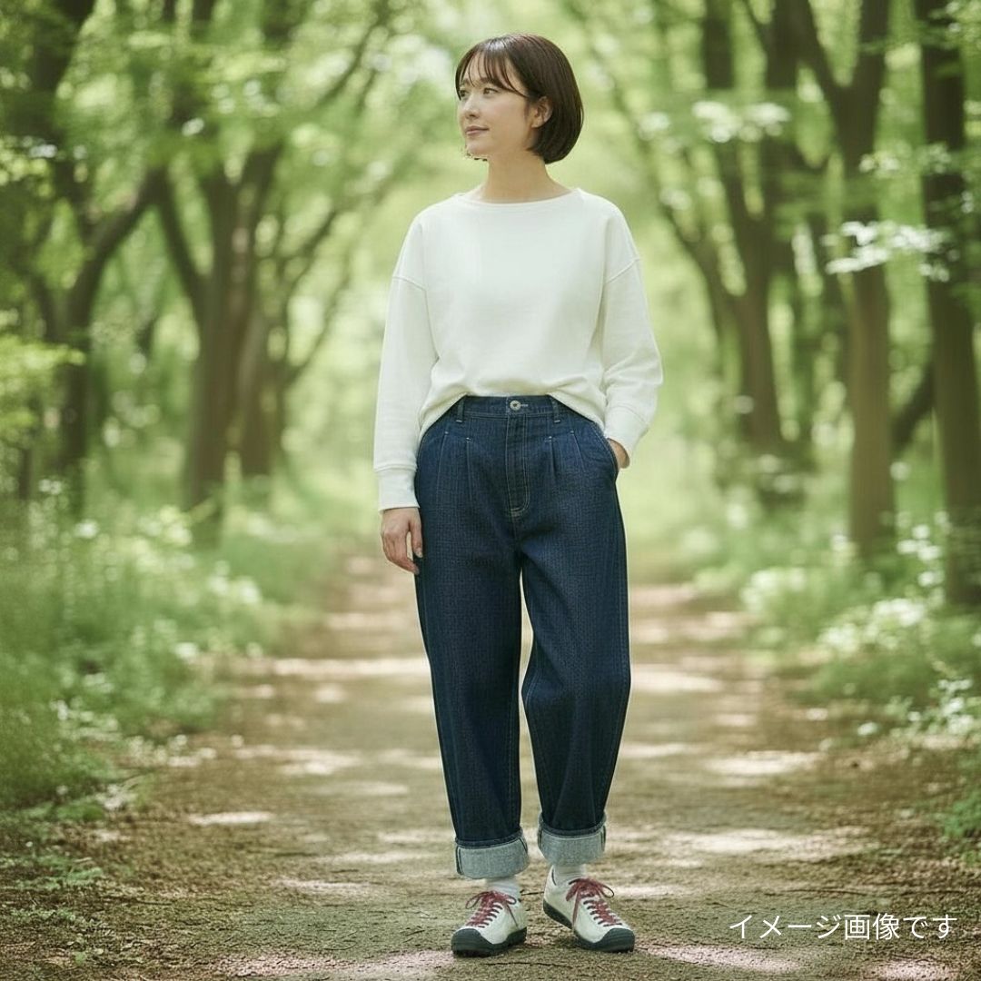 ・ワイドストレートに近いシルエットで、リラックス感のある穿き心地