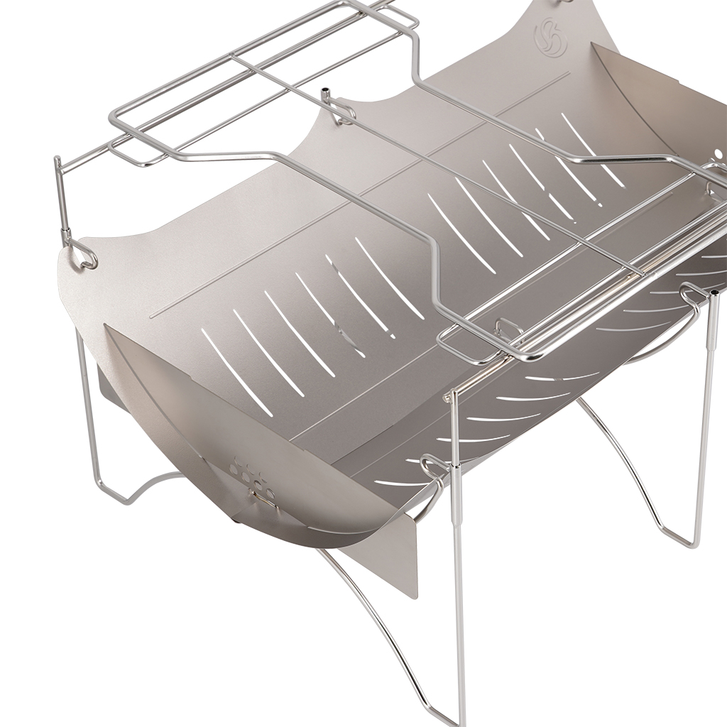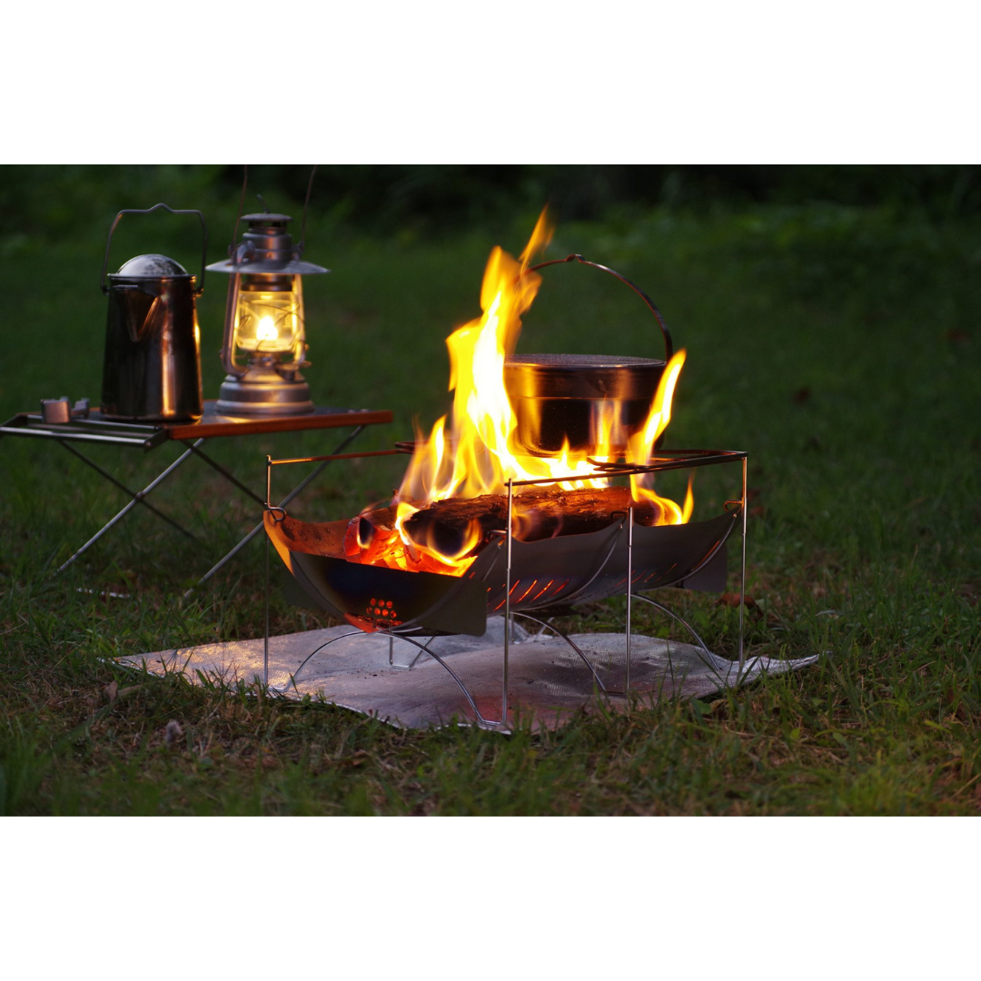 グループや滞在型キャンプでも使いやすいチタン製軽量焚き火台。