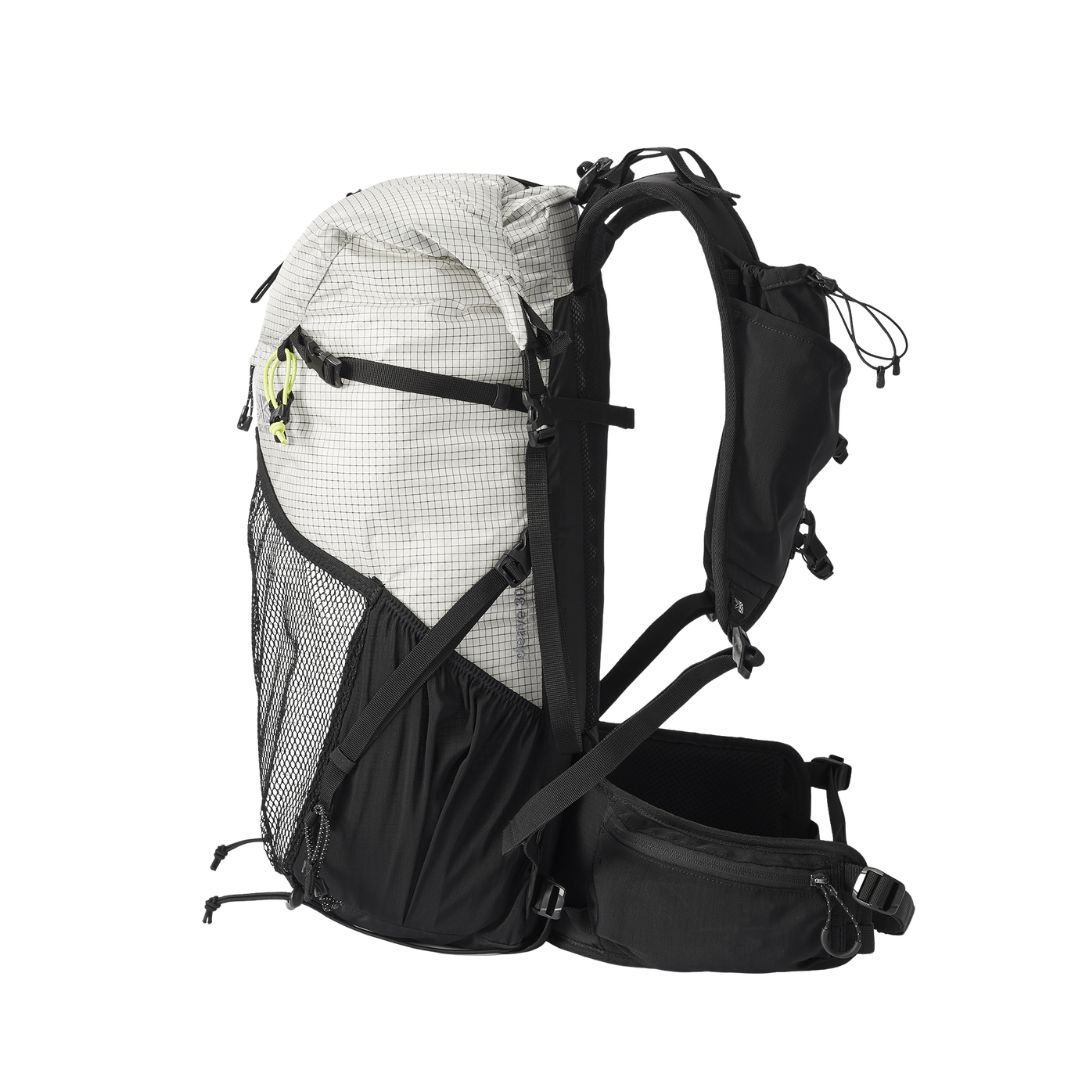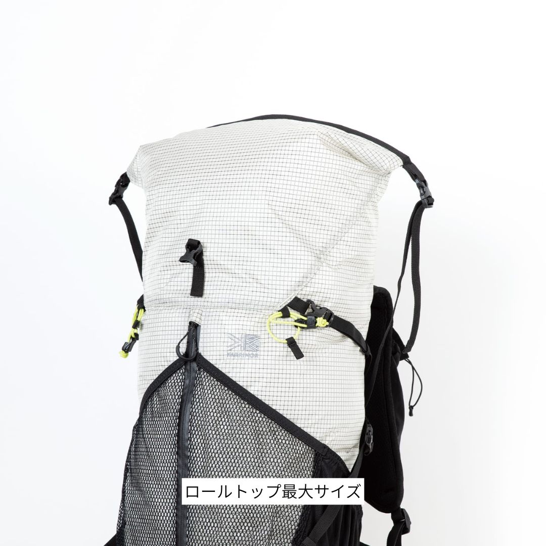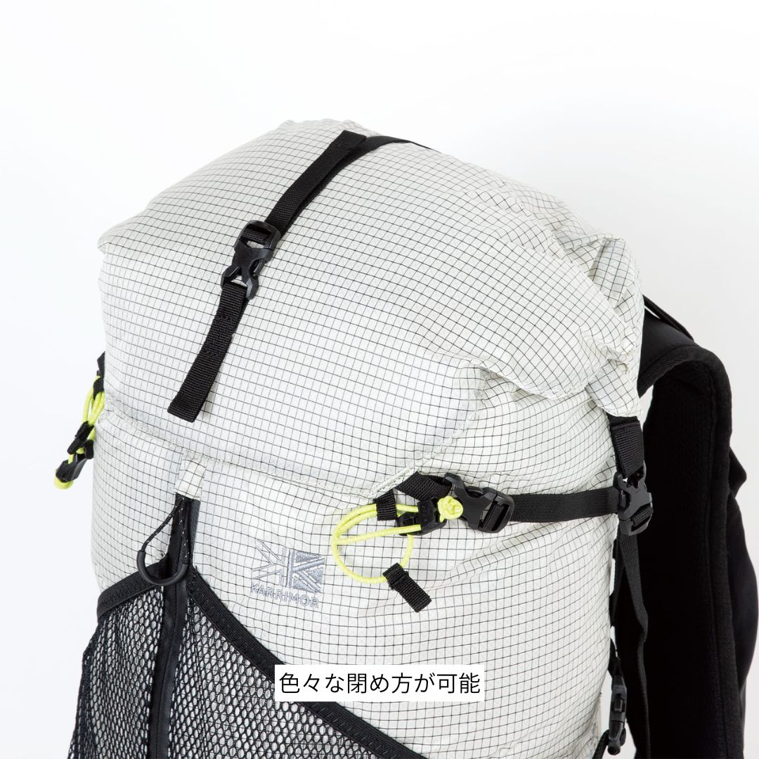 優れた強度を持つX-GRID R/S生地を使用し、容量調整ができるロールトップタイプのリュックサック、クリーブ 30です。
