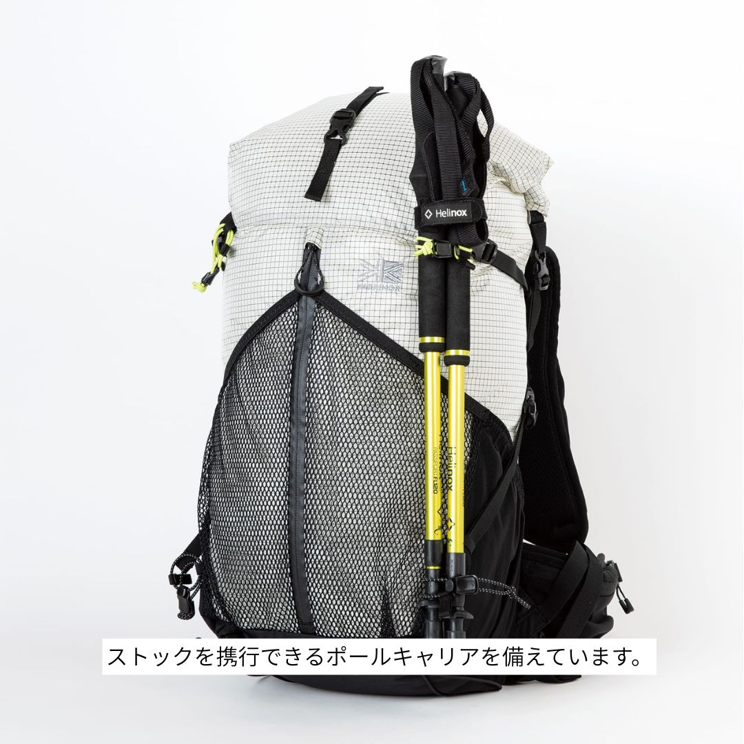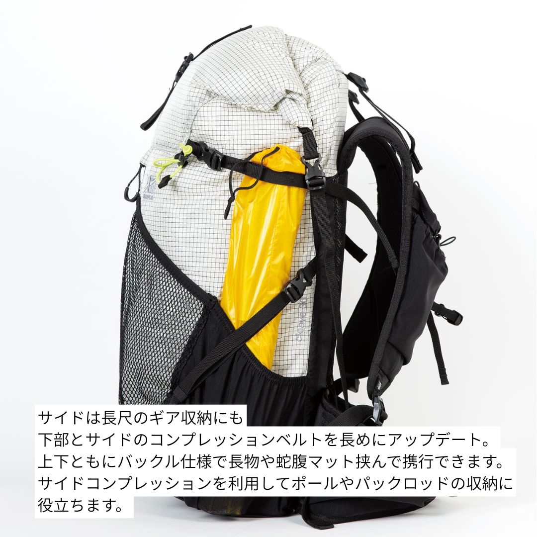 ・サイドコンプレッションを利用した長尺のギア収納が可能(ポールやパックロッドなど)