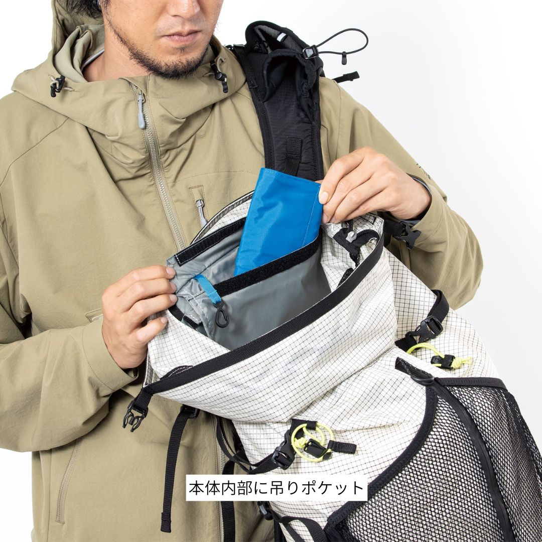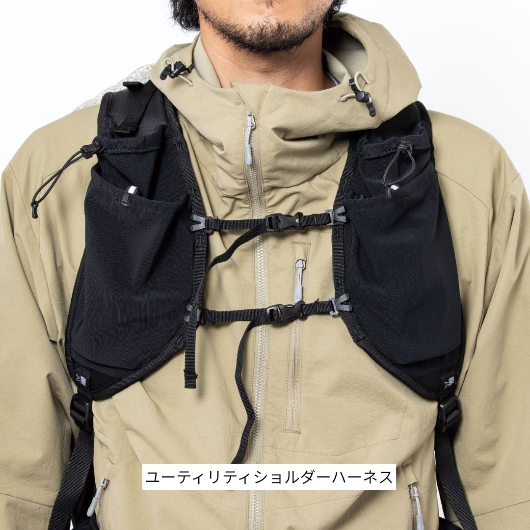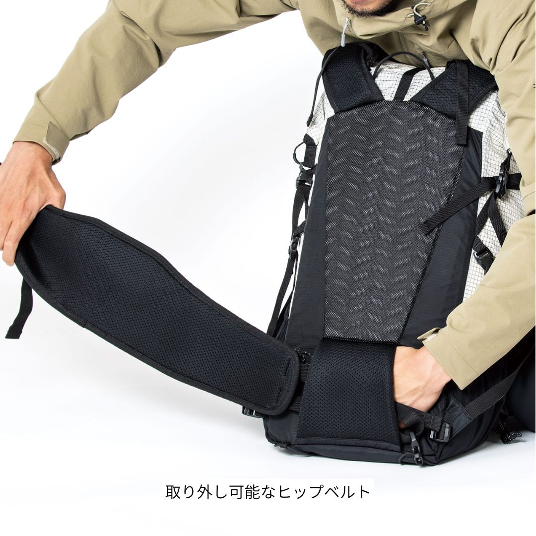 ユーティリティショルダーハーネスや、フロントアクセス、深くなったワンドポケットなど、豊富な機能を装備。ヒップベルトは取り外し可能で、用途に応じたカスタマイズが可能です。