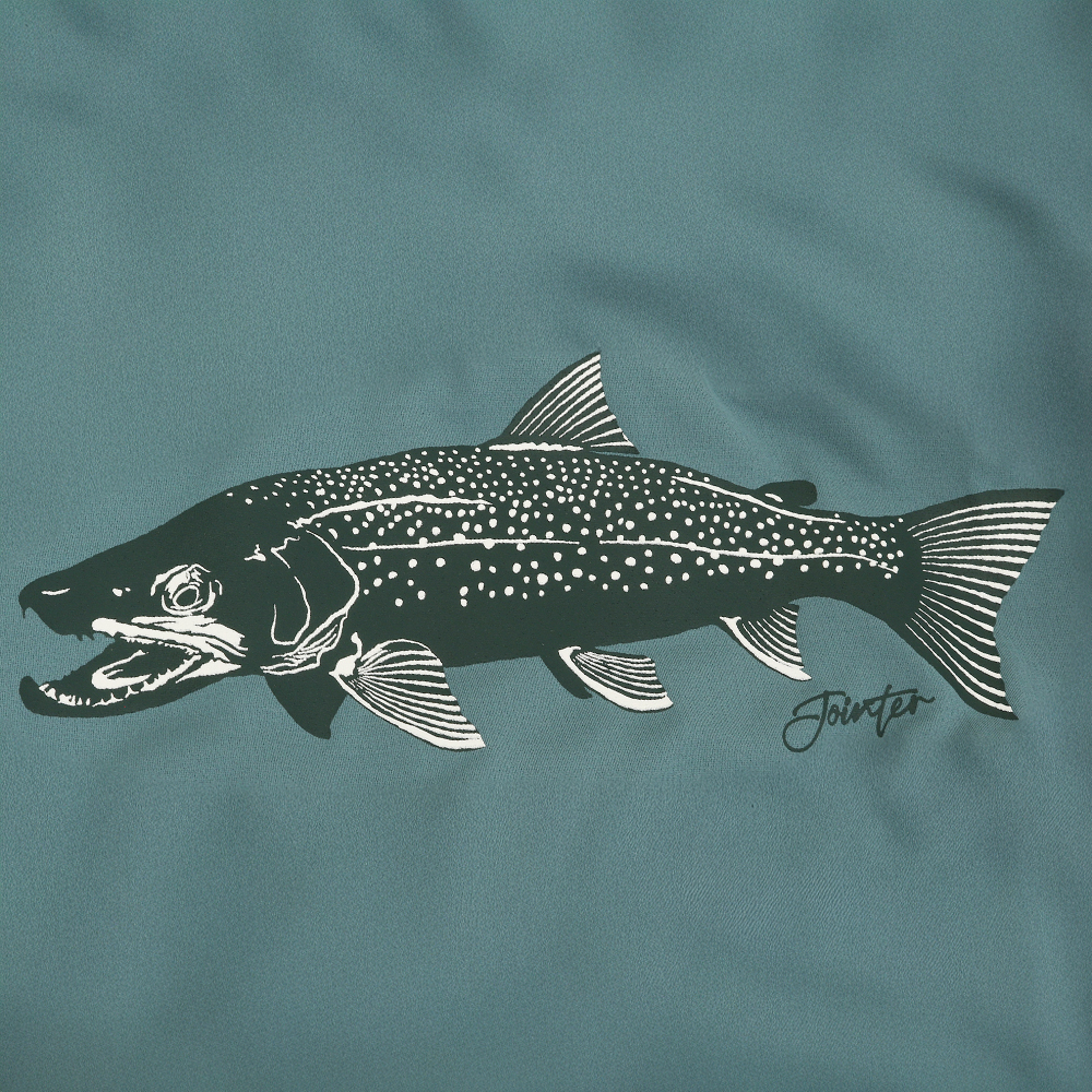 背に描いたのは、厳しい自然を生き抜いた「鼻曲がり(カイプ)」の尺イワナ。