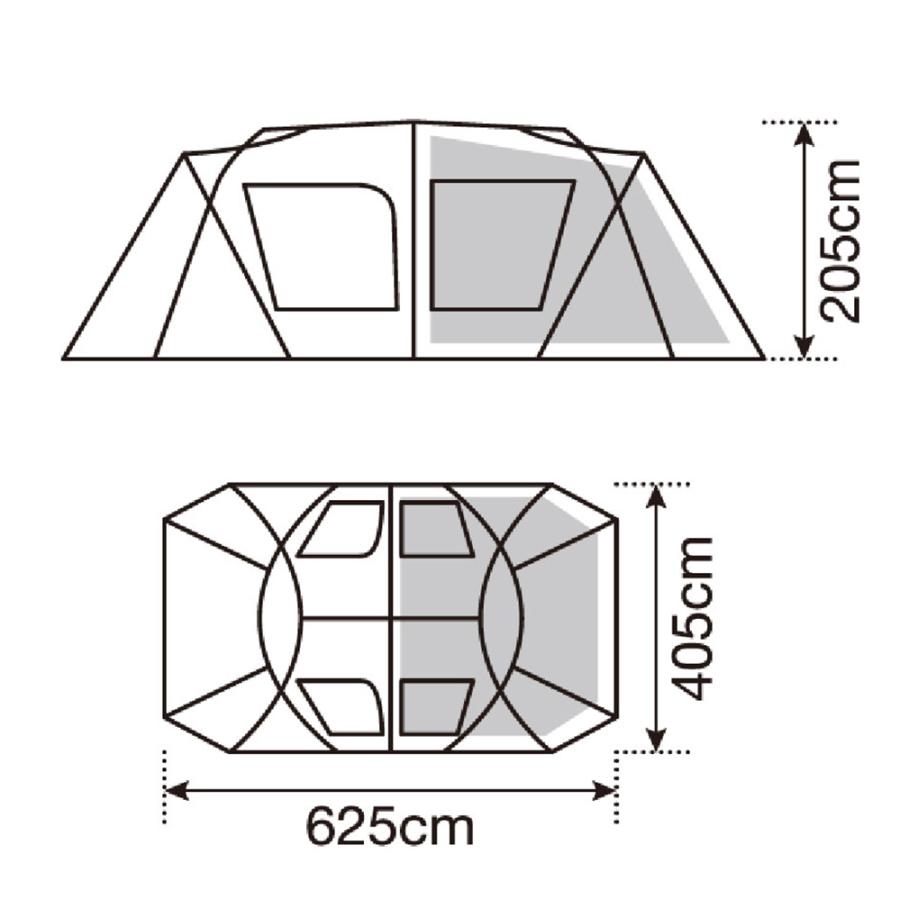 本体、インナールーム、ルーフシート、Aフレーム(×2)、Cフレーム(×2)、センターフレーム、リッジポール、ジュラルミンペグ(21cm×27)、自在付ロープ(1.5m×2、2.5m×4、3.5m×6)、シームグリップ剤、ペグケース、フレームキャリーバッグ、キャリーバッグ、コンプレッションベルト(×2)