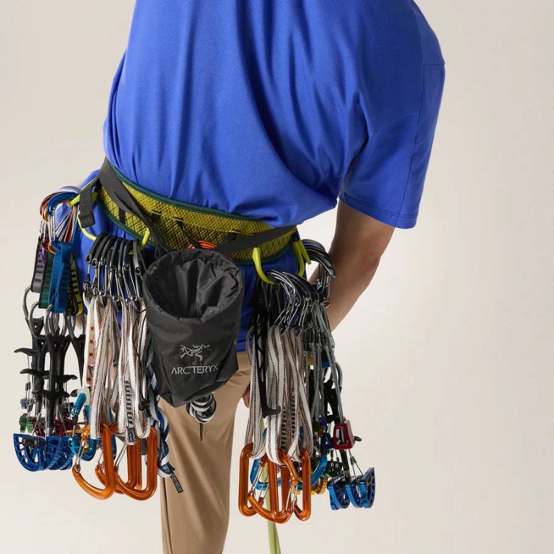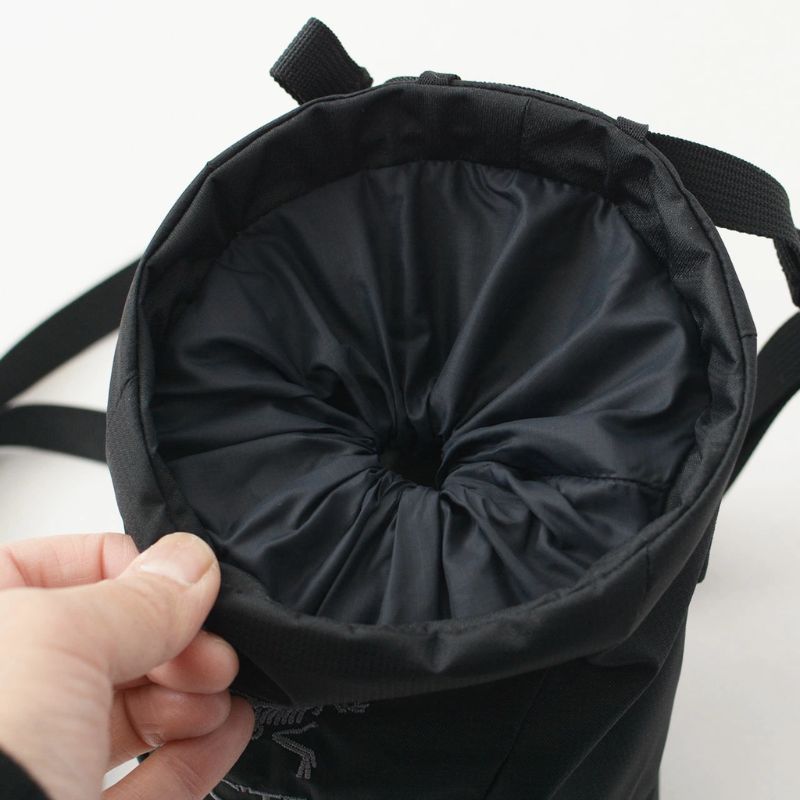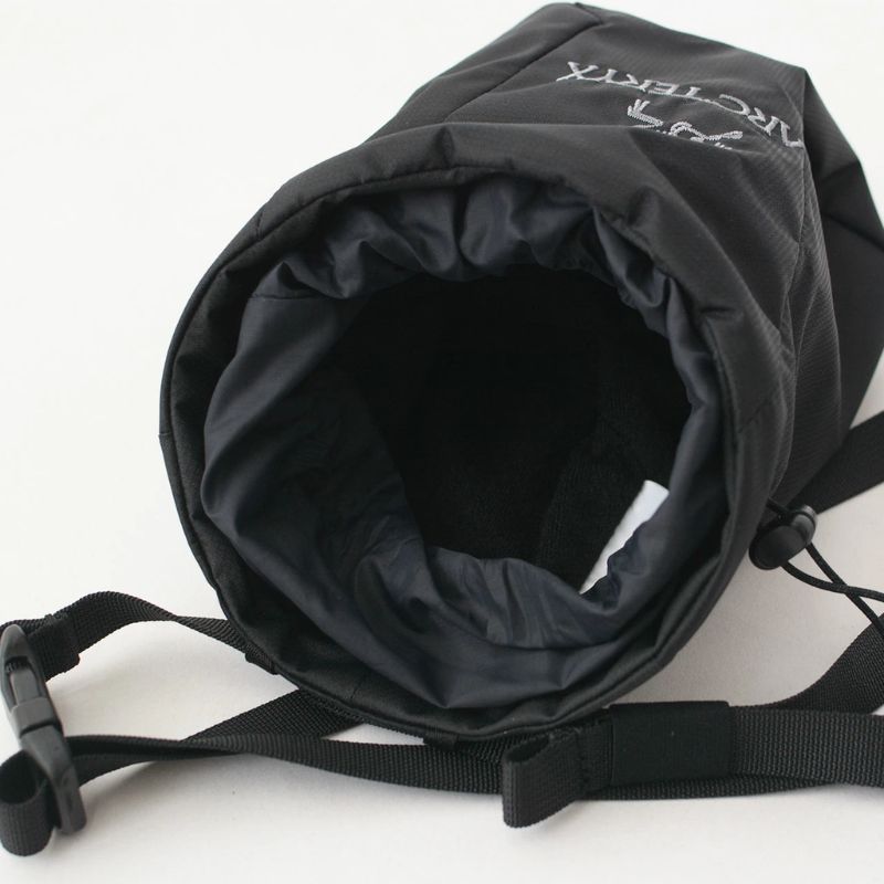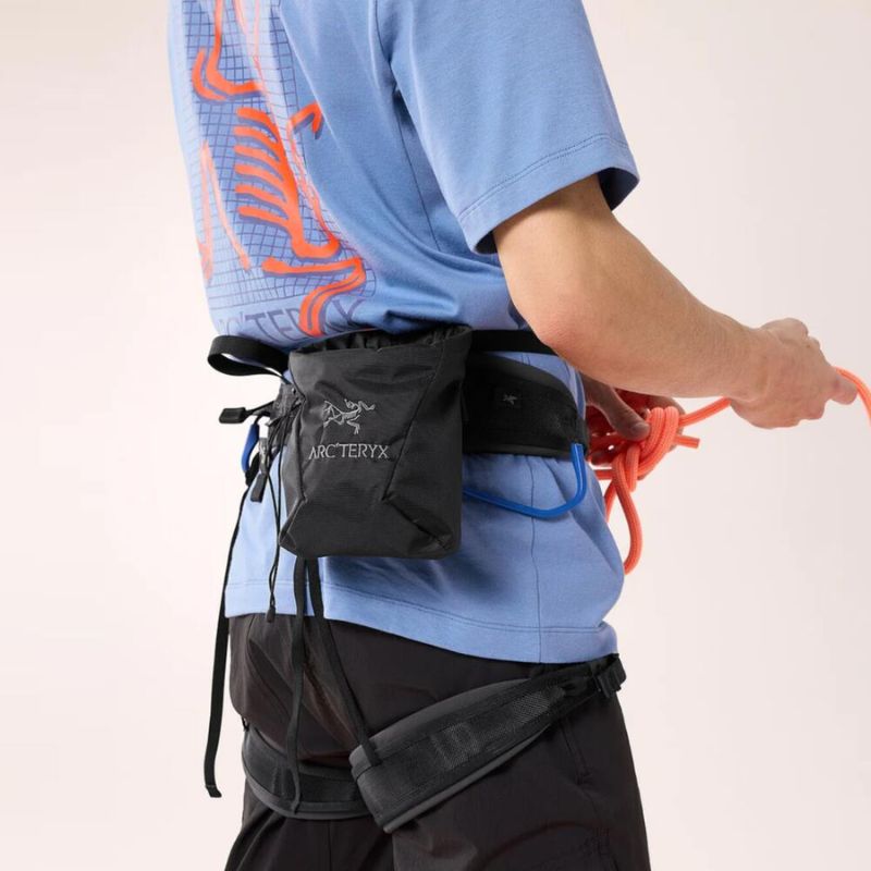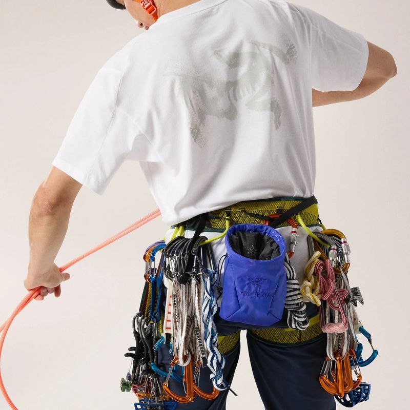 背面にはカラビナを取り付けやすいループも備えており、ハーネスへの装着も容易です。無駄を削ぎ落としたミニマルなデザインの中に、アークテリクスならではの機能が凝縮されています。