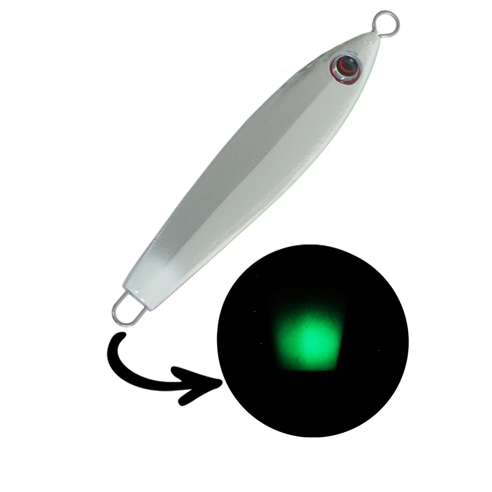 光量が少ない朝夕やマズメ時に、ライトで蓄光させて使用。魚へ強力にアピールします。