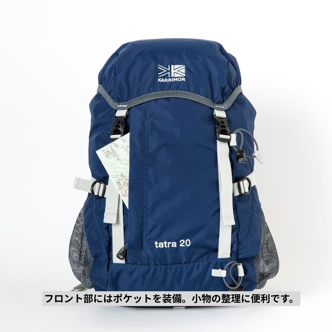 パッド入りヒップベルトにポケットを装備し、大き目のワンドポケットやフロントポケットなど、トレッキング用で活躍する機能を多数装備した、機能充実の小型トップローダー、タトラ 20です。