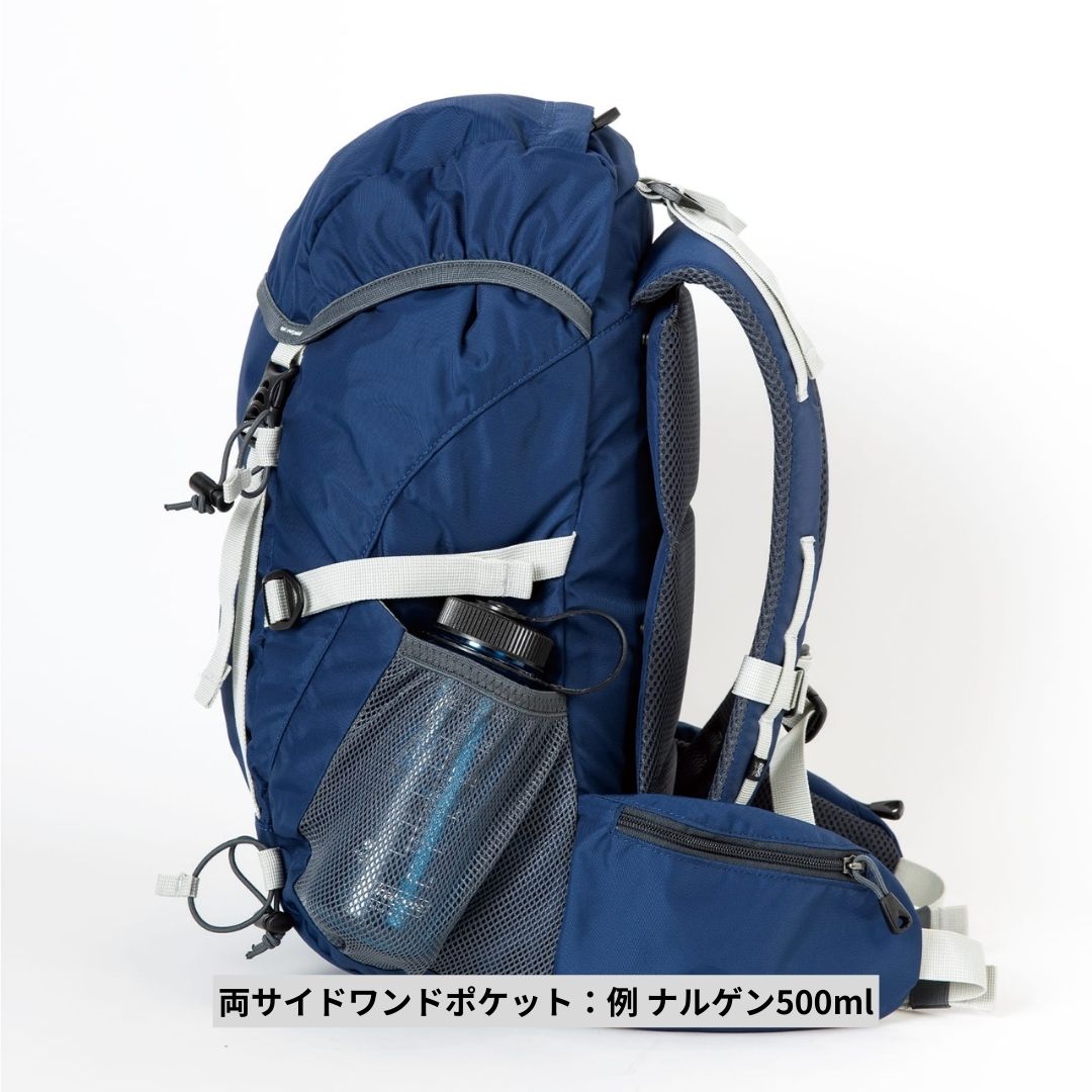 ・両サイドワンドポケット:ナルゲン500mlやペットボトル500ml、山専ボトルなど収納可能