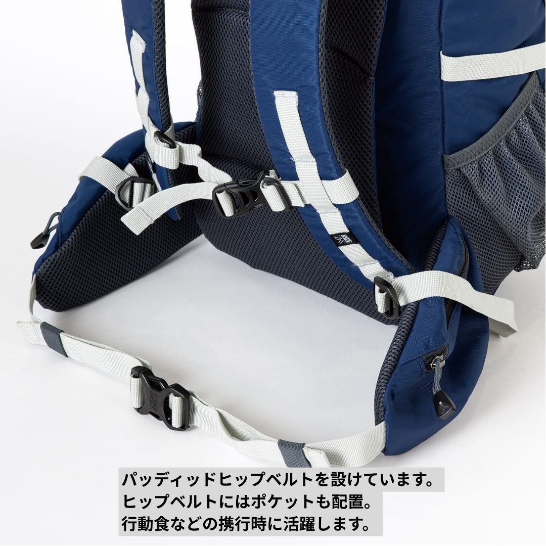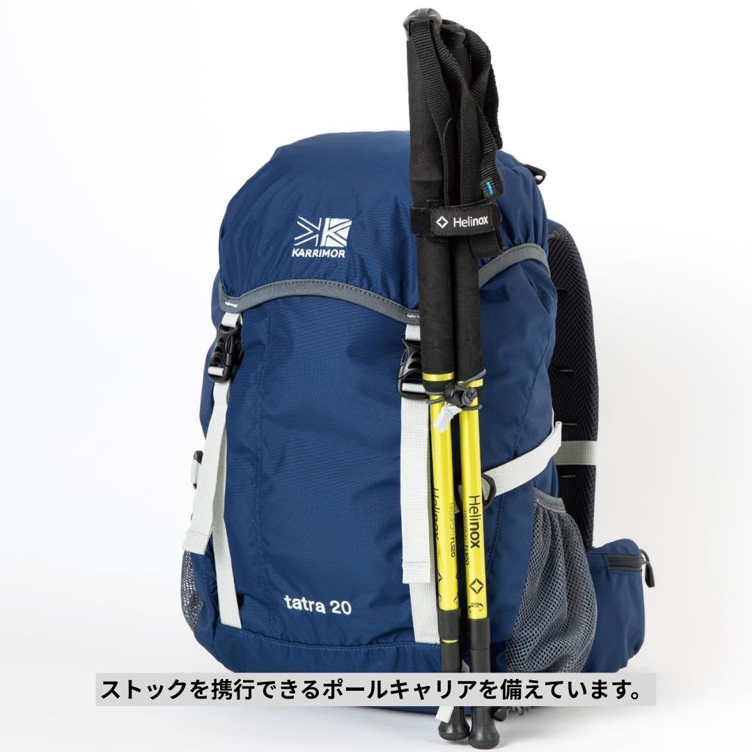 容量は20Lで、日帰りトレッキングなどに最適。600gという軽量設計ながら、パッド入りのヒップベルトやチェストベルト、ポールキャリアなど、快適な行動をサポートする機能を凝縮しています。