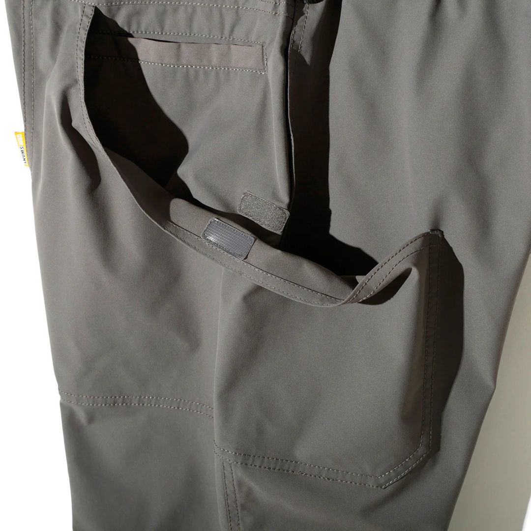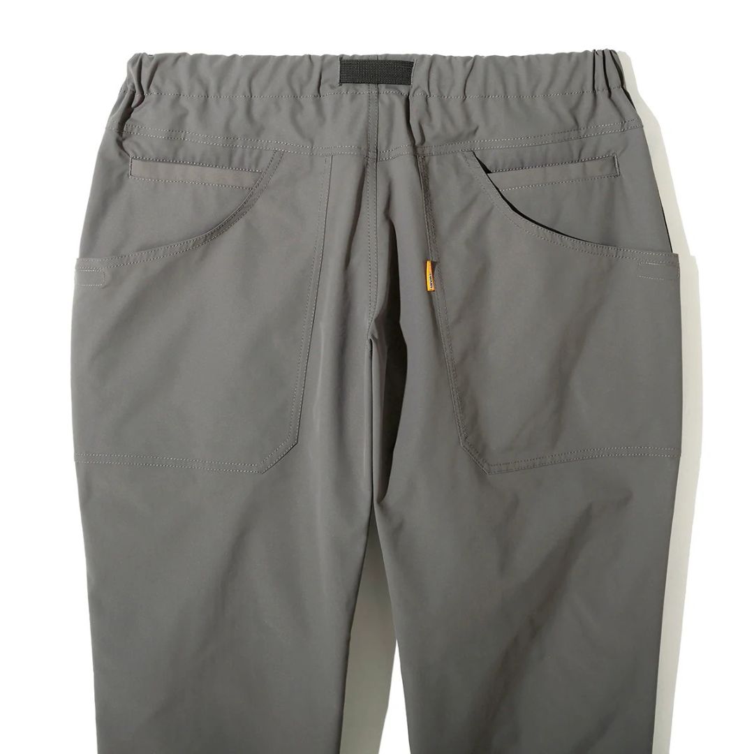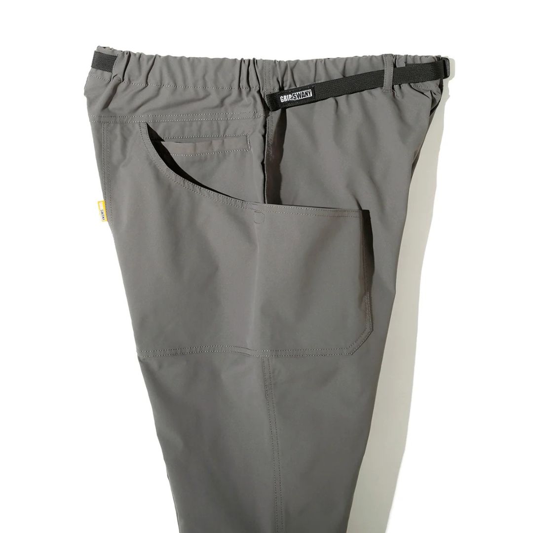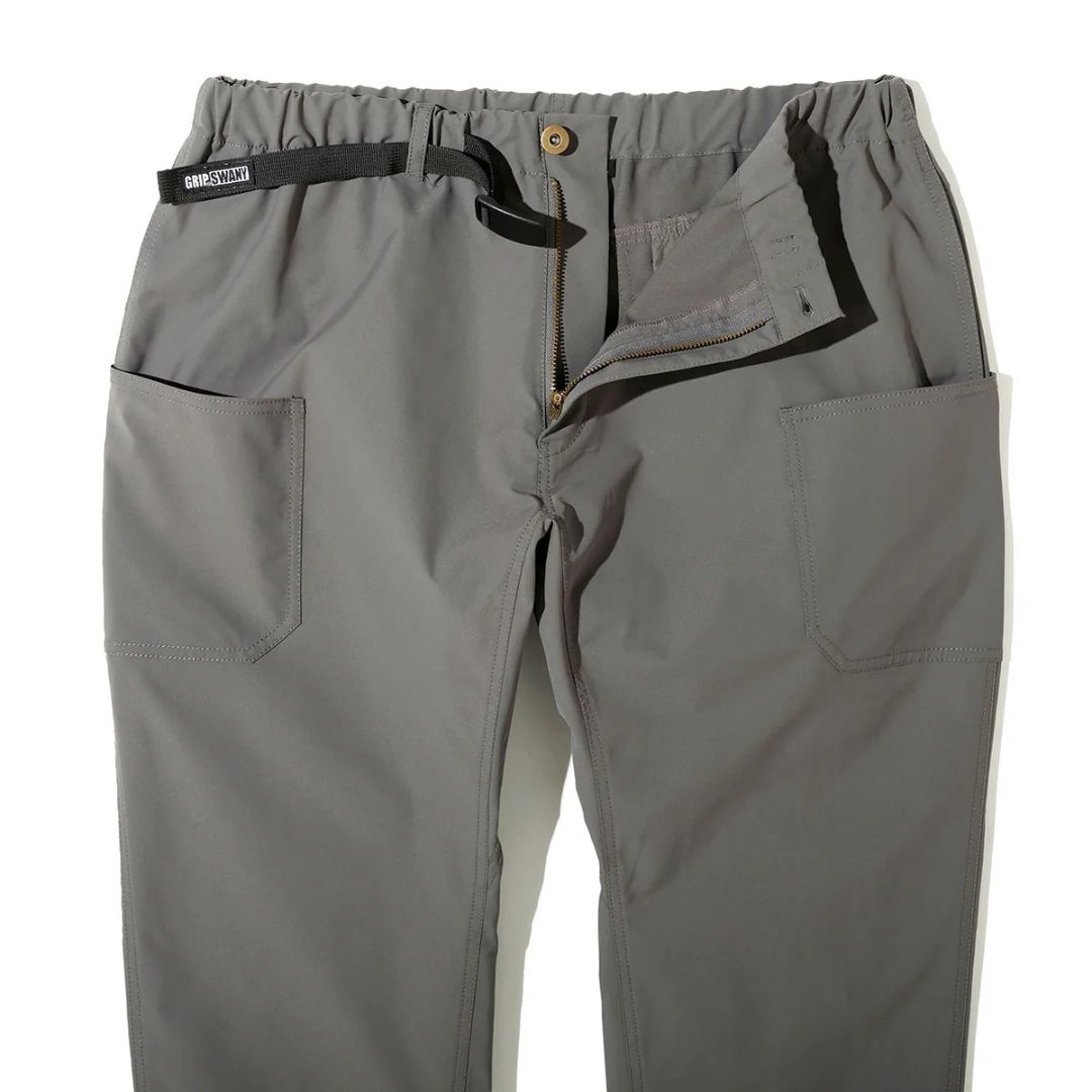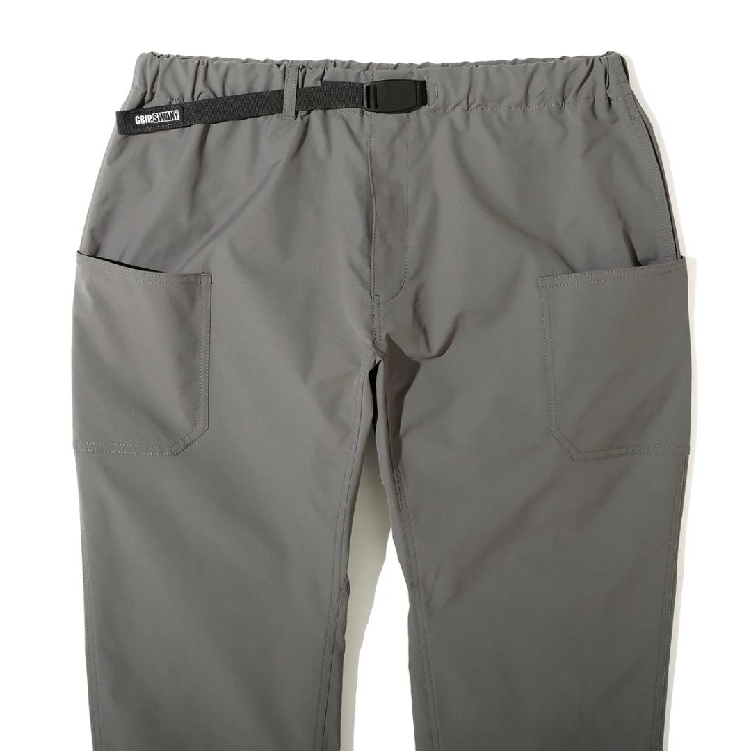 ツイル素材ならではの上品な表情が特徴で、キャンプサイトでの機能性はそのままに、街中でのスタイリングにも馴染む汎用性の高いデザイン。グリップスワニーを象徴するBIGポケットに加え、スマートフォン専用のポケットを配置。ギアの持ち運びから日常の小物収納まで、高い収納力を備えています。ウエストは調節可能なベルト仕様で、シーンに合わせた最適なフィット感を得られます。