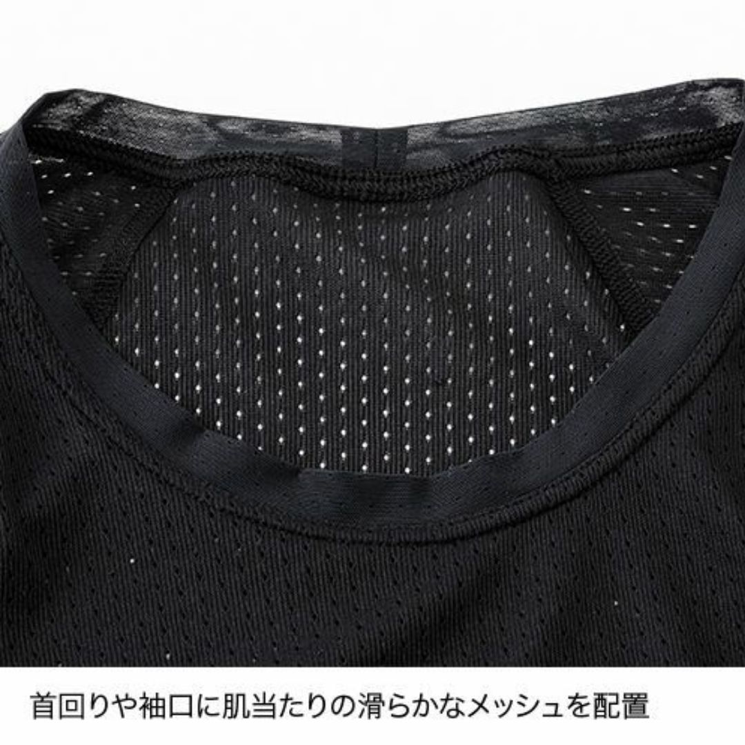 適度な保温力と汗抜けスピードのバランスに優れ、季節を選ばない汎用性の高さが特長です。伸びの良い柔らかなメッシュ生地が身体の動きに追従し、ストレスフリーな着心地を実現しました。