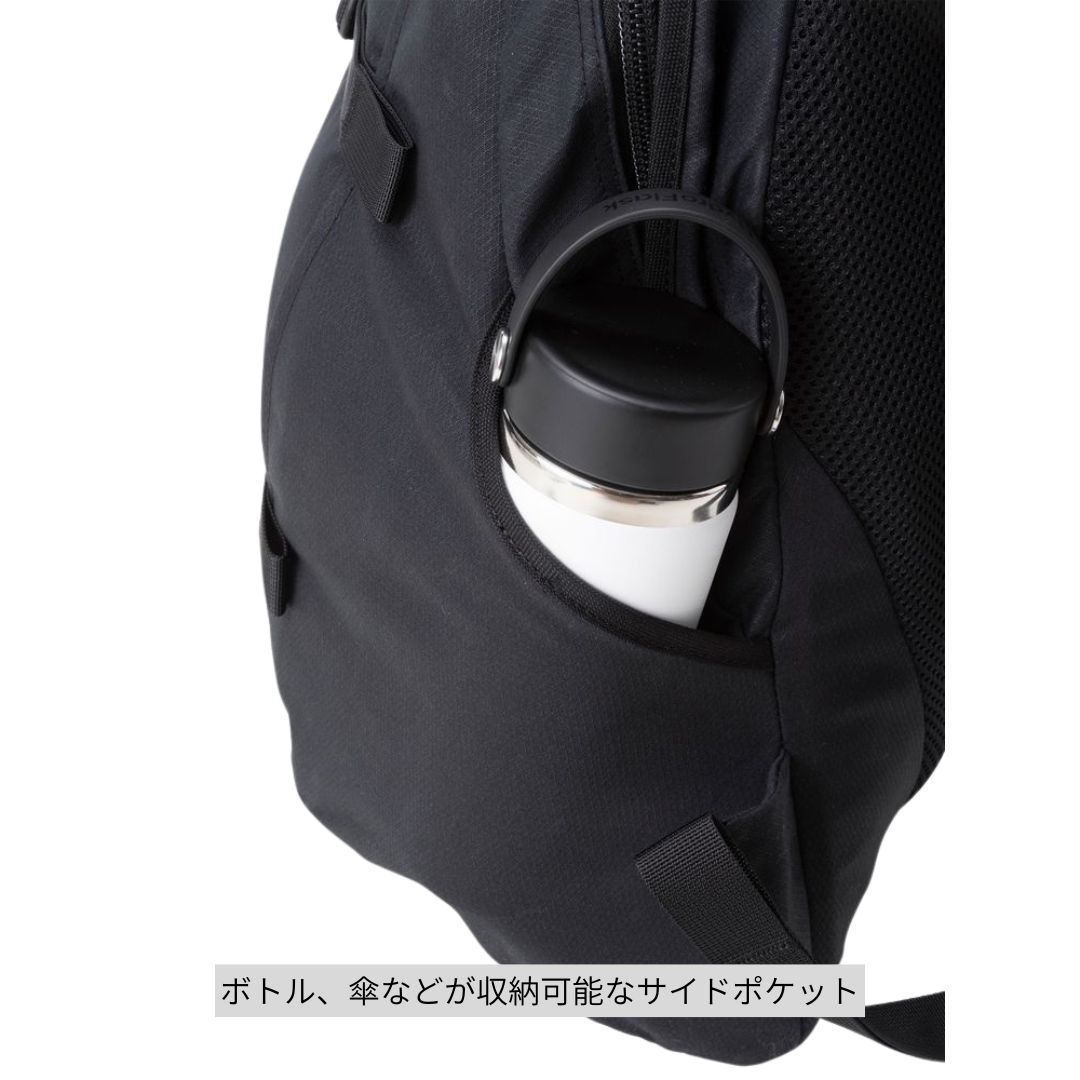 ・ボトルや折りたたみ傘などの収納に便利なサイドポケット