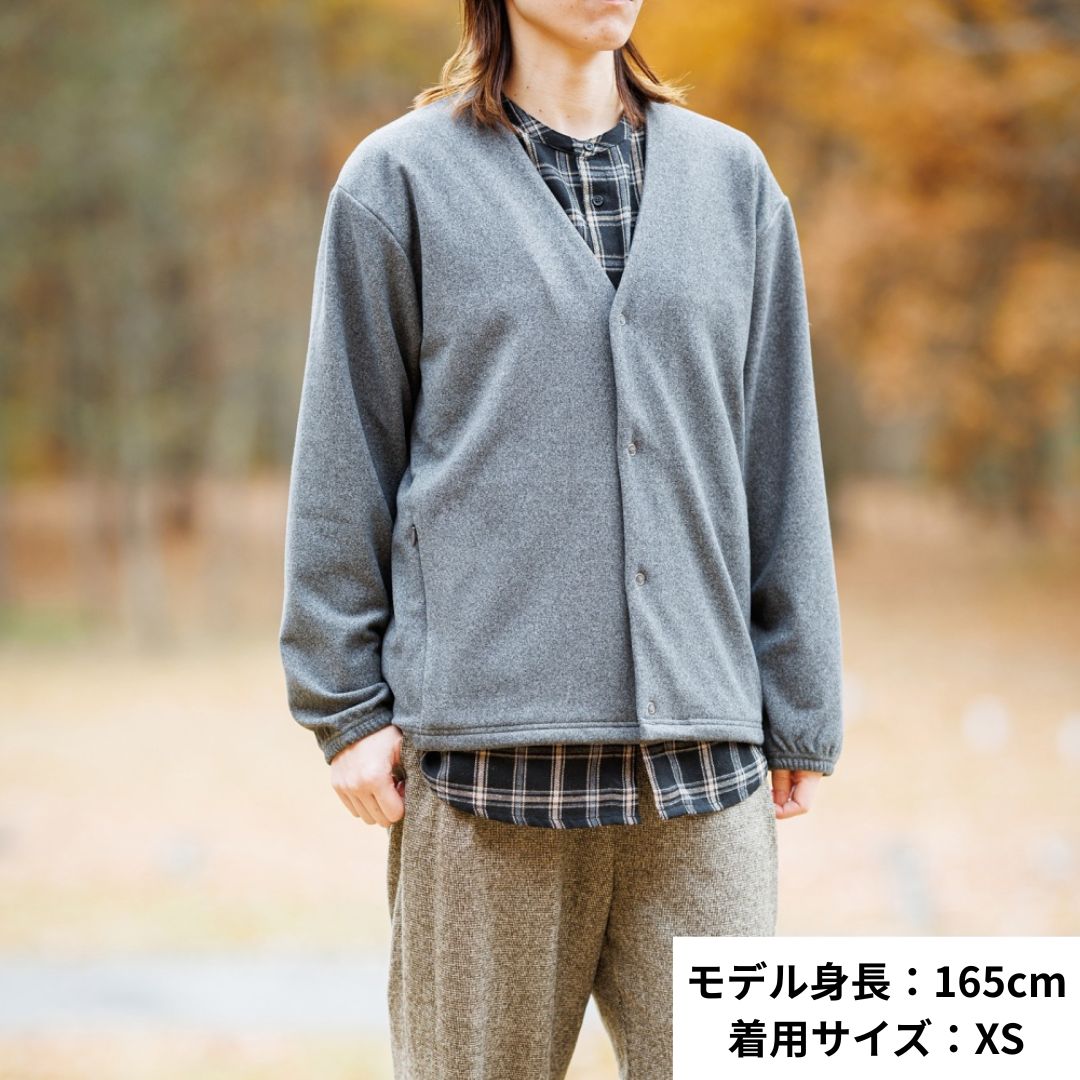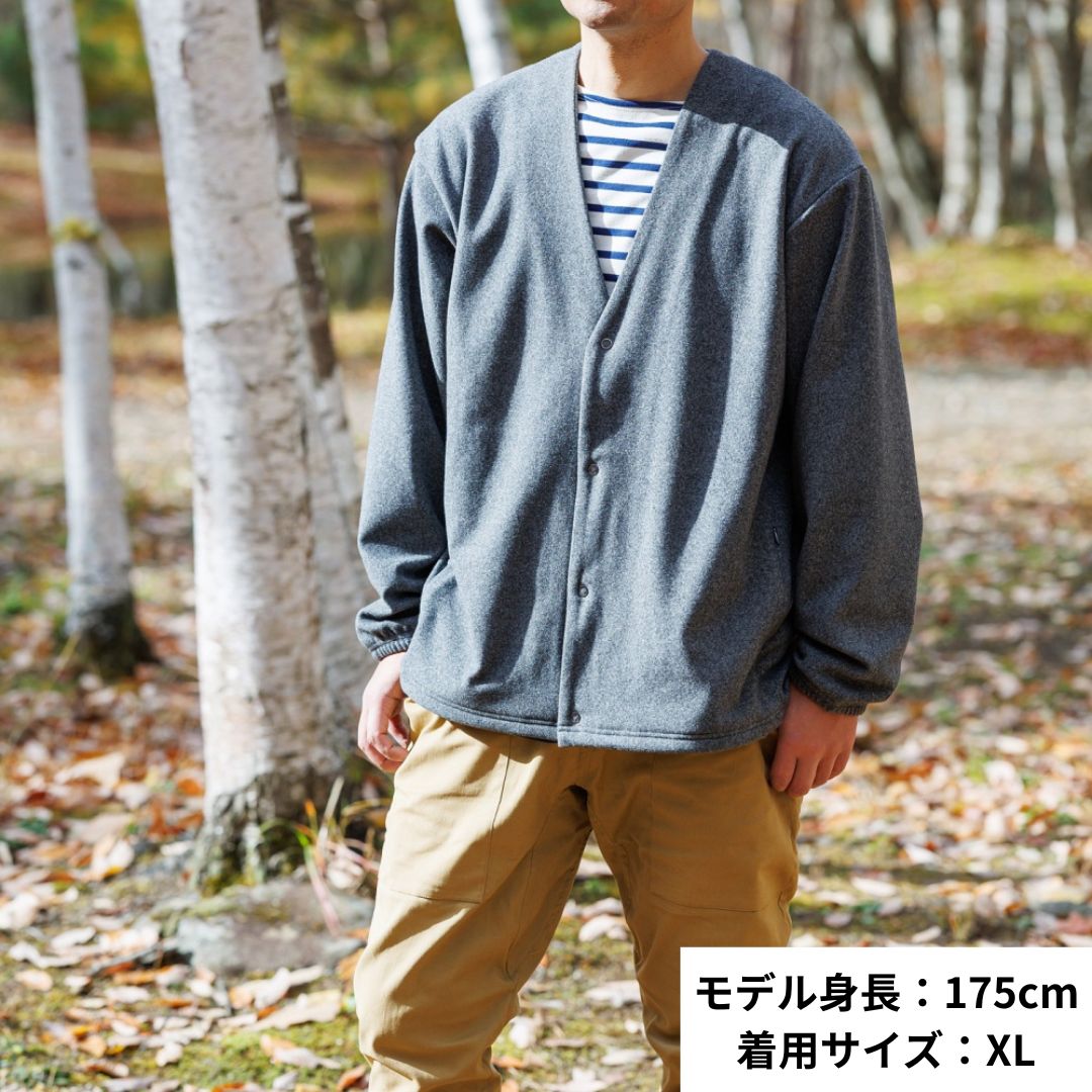 薄手ながら温かいVネックフリースカーディガン。フィールドからビジネスまで幅広く使える万能アイテムです。